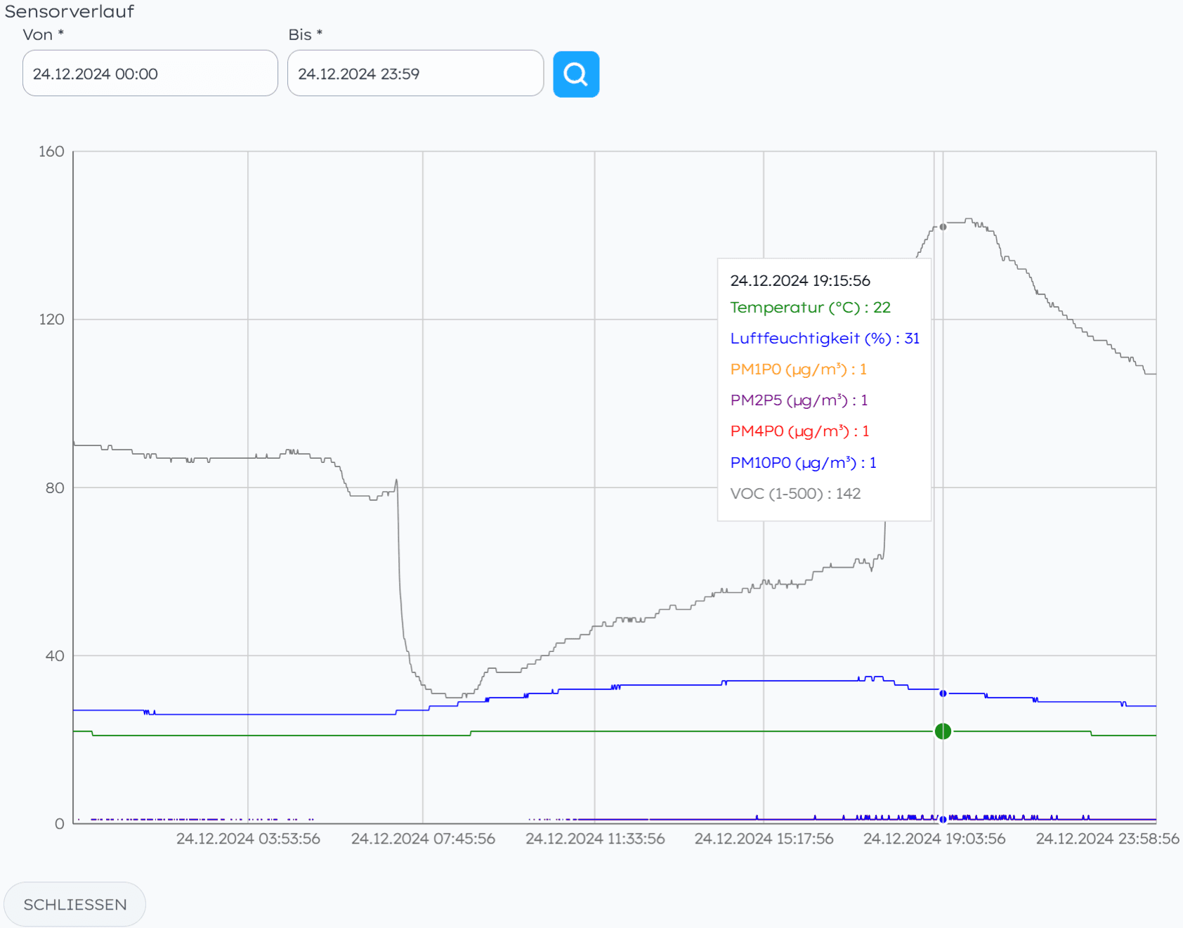 überwacht Temperatur, Luftfeuchtigkeit sowie Feinstaub und Schadstoffe in der Raumluft